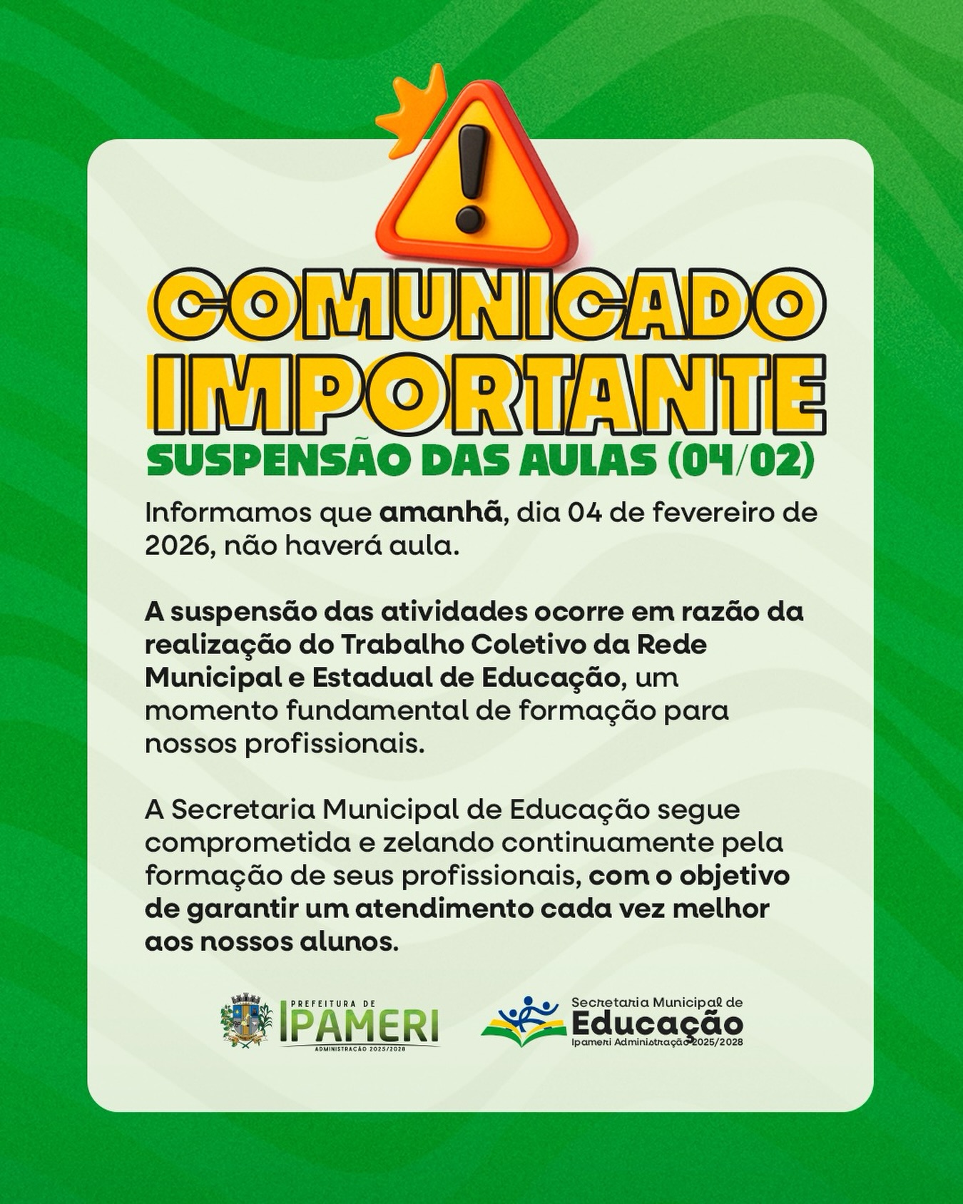 Trabalho Coletivo: 04 de fevereiro de 2026, não haverá aula