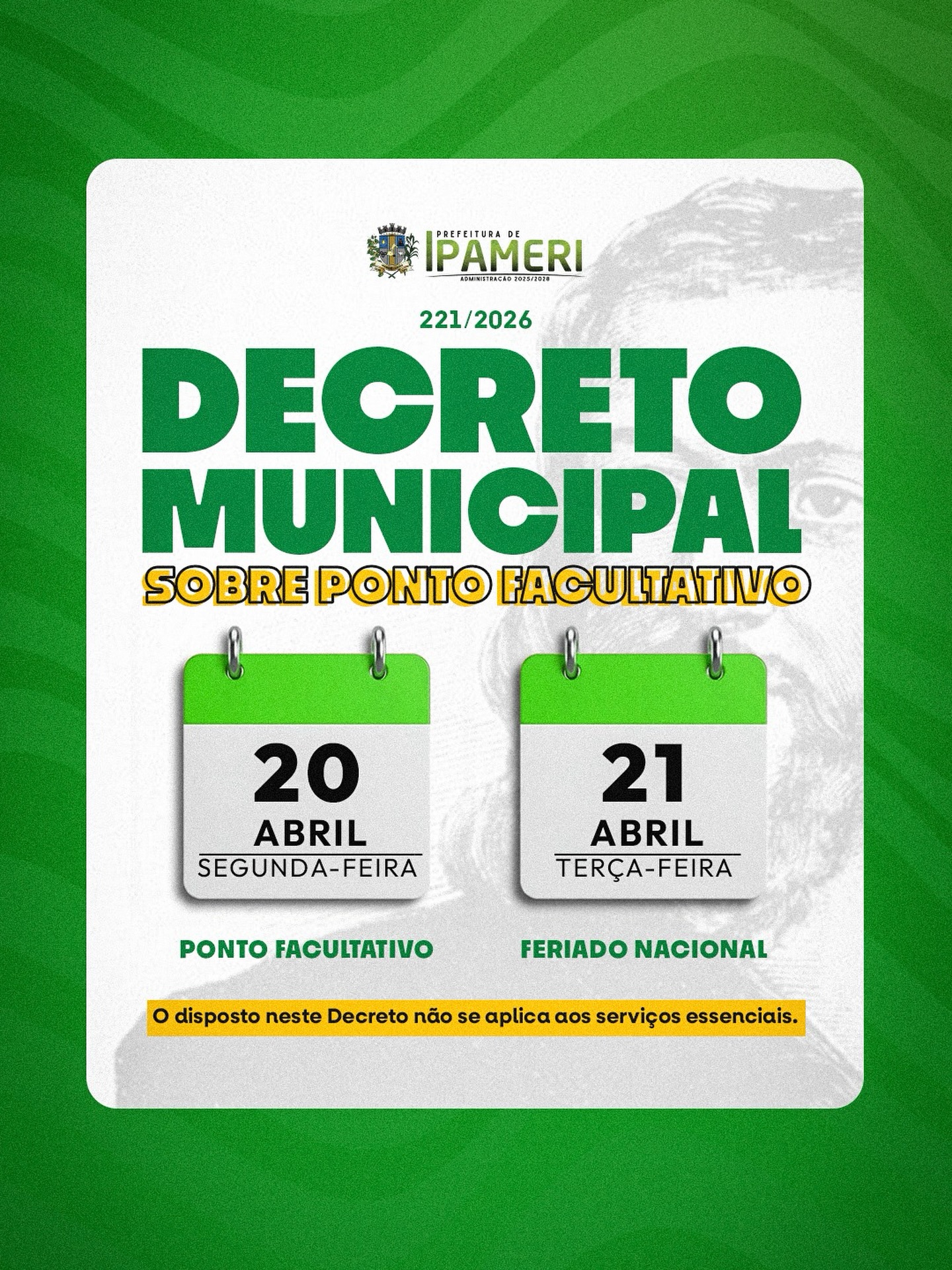 A Prefeitura de Ipameri, por meio do Decreto G.P. Nº 221/2026, estabelece ponto…