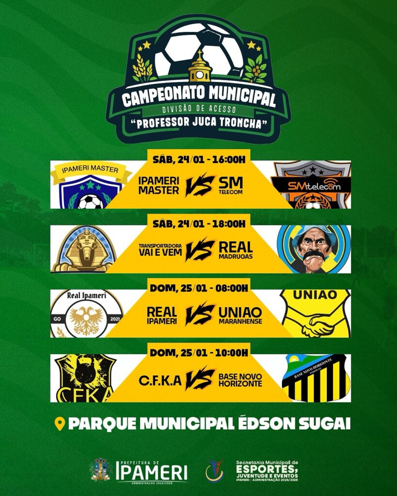 A Prefeitura de Ipameri, por meio da Secretaria de Esportes, Juventude, Lazer e Eventos, dará início ao Campeonato Municipal Divisão de Acesso “Professor Juca Troncha”. ![]()