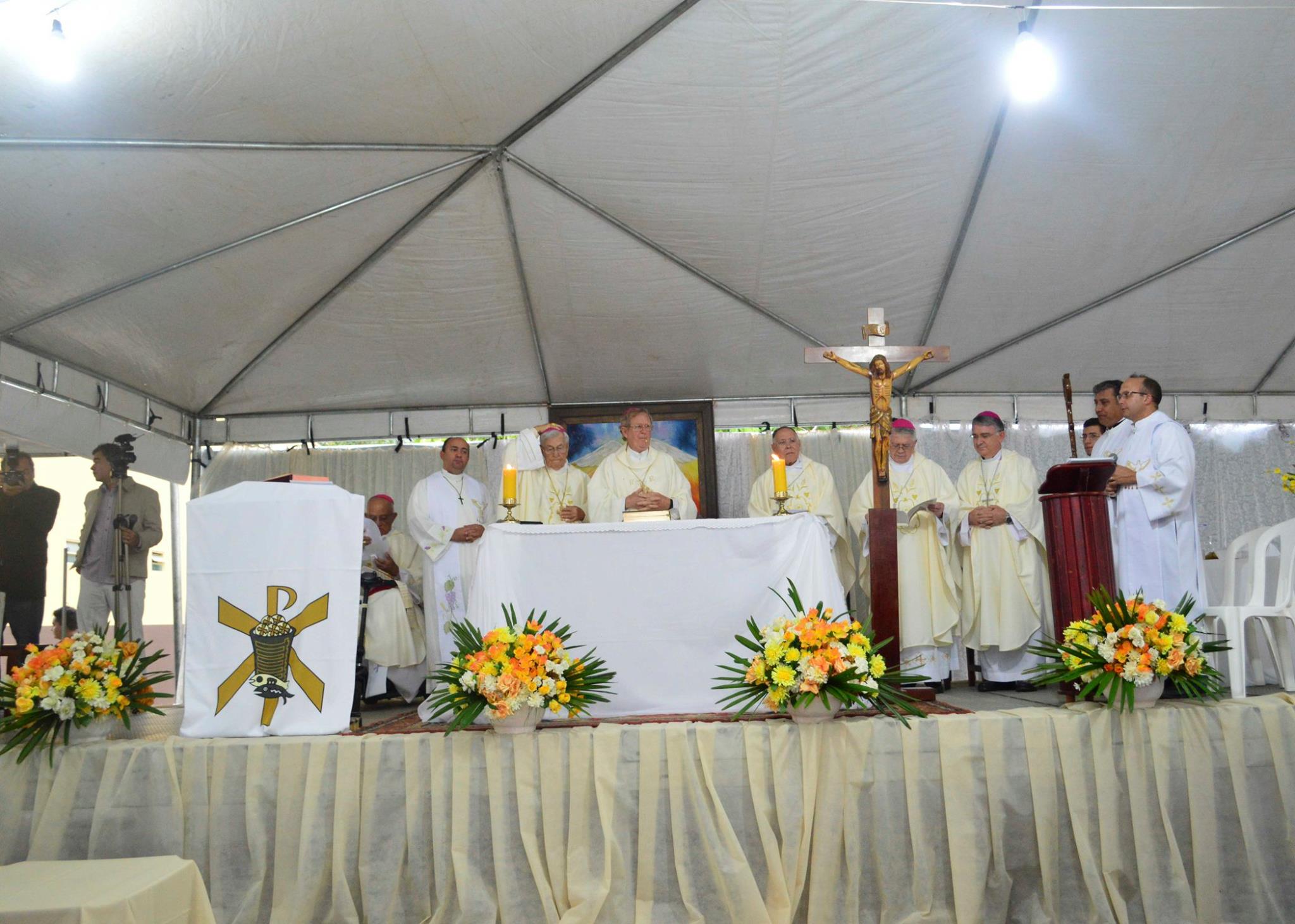 Aconteceu, neste sábado 03/12, as comemorações em homenagem aos 50 Anos de Criação e Instalação Canônica da Diocese Divino Espírito Santo, em Ipameri, presidida pelo Bispo Diocesano Dom Guilherme Werland. Foi realizada uma missa a frente da Catedral do Divino Espírito Santo com presenças ilustres como o 1º Bispo de Ipameri, hoje Emérito de Campinas – SP, Dom Gilberto Pereira Lopes, Dom Antônio Ribeiro de Oliveira, Dom Washington, Dom Levi Bonato, Dom Antônio Fernando e Padres da região. O evento contou com a presença do Governador do Estado de Goiás, Sr. Marconi Ferreira Perillo, Prefeita Daniela Vaz Carneiro, Vice Prefeito Eleito, Dr. José Roberto Marot e demais autoridades. Um grande número de pessoas prestigiaram a celebração da Missa e as comemorações do Jubileu de Ouro da Diocese de Ipameri.