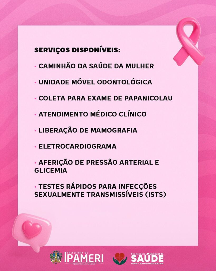 A Prefeitura de Ipameri, por meio da Secretaria Municipal de Saúde, convida toda a população para participar do Grande Evento do Outubro Rosa, voltado à saúde da mulher.